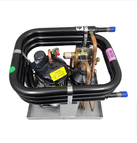16,000 BTUs of powerful, quiet, and efficient cooling. 115V. Titanium circulating coils, stainless steel bolts, and stainless steel structural pan ensure long-lasting, corrosion-proof compressor / condensing unit performance in even the toughest of marine environments. 2 Year Warranty*. Patent Pending S/N 63/104189.
